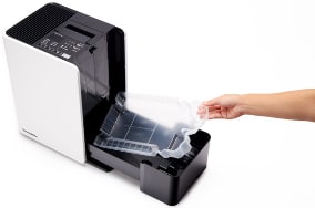 ※ハイブリッド式(気化式×温風気化式)加湿器は目には見えないほどの細かい粒子の水をファンの風で送り加湿します。